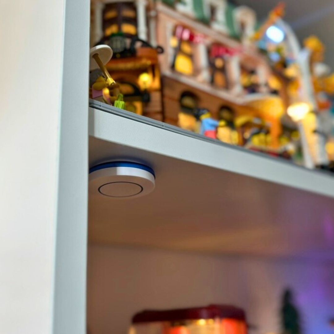 Włącznik możesz łatwo przykleić np. do półki z zestawem LEGO, aby był zawsze pod ręką. Dzięki pilotowi działającemu na częstotliwości 433 MHz możesz sterować oświetleniem z odległości nawet do 50 metrów. To idealne rozwiązanie, jeśli Twoje LEGO stoi na półce, w gablocie albo w trudno dostępnym miejscu.